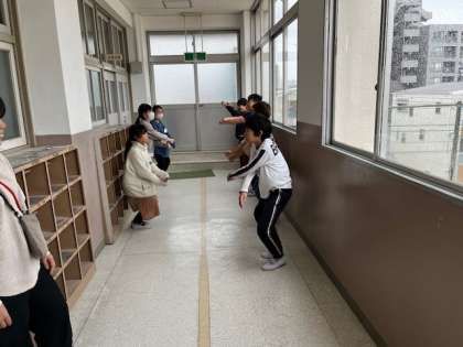 5月13日(月)1時間目、6年は修学旅行の係の活動をしていました。廊下では、健康係が朝のラジオ体操を左右逆さまでする練習をしていました。いよいよ修学旅行まで一か月を切りましたね。