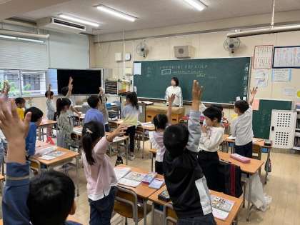 5月13日(月)2時間目、2年1組は生活科で「まちたんけん」について話し合っていました。