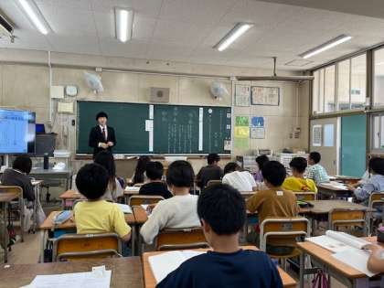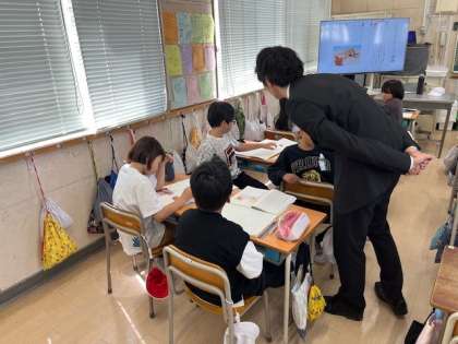 5月17日(金)2時間目、4年2組は国語で「ヤドカリとイソギンチャク」を学習していました。「中」の場面をいくつかのまとまりに分けていました。