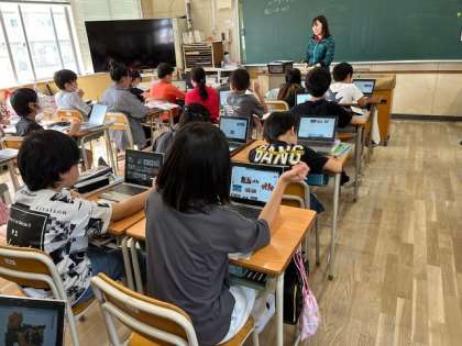 5月24日(金)1時間目、5年1組はシーサーのことを調べていました。