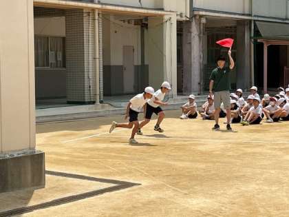 5月24日(金)3時間目、4年は体育で、50m走を計測していました。