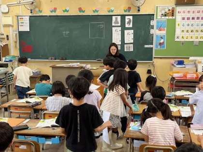 5月27日(月)1時間目、1年2組は国語で小さい「つ」の学習をしていました。書くときは「2の部屋」へ書くようにしていました。