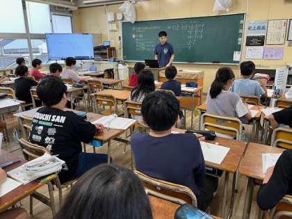 5月28日(火)3時間目、6年1組は算数で分数でも計算のきまりが成り立つか考えていました。