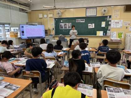 5月28日(火)3時間目、3年1組は社会科で店の多いところの様子を調べていました。
