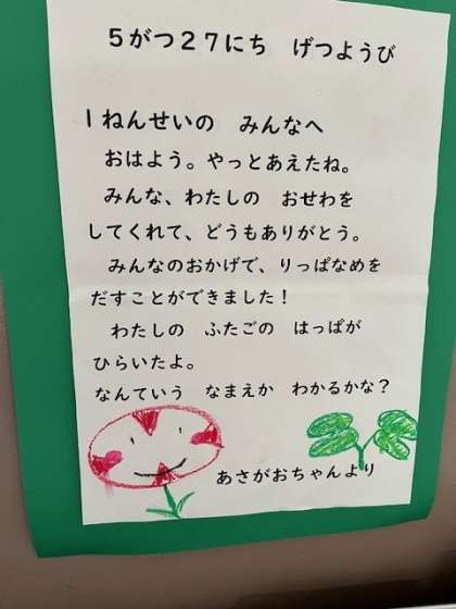 5月29日(水)あさがおちゃんからの手紙が届いていました。