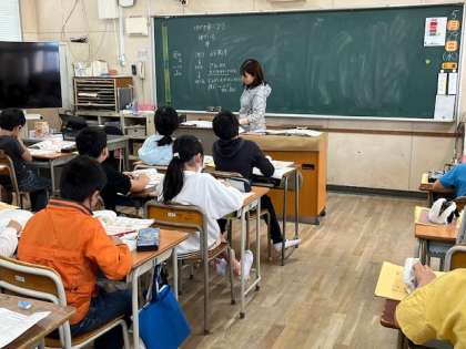 5月29日(水)3時間目、5年1組は家庭科で「ゆでて食べよう」を学習していました。じゅがいものゆでかたについて学習していました。