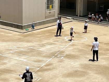 6月4日(火)4時間目、2年がソフトボール投げをしていました。