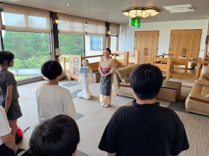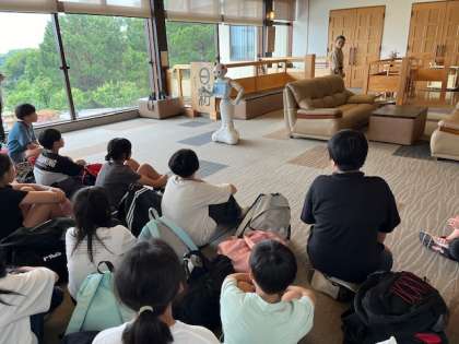 宿舎に着き、開舎式を行いました。ペッパーかしこさんから注意事項を聞きました。全員元気にこれから部屋へ行きます。
