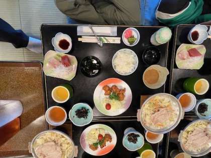 夕食が始まりました。豪華な食事です。