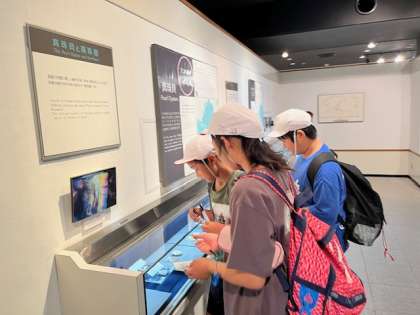 真珠博物館で真珠の作り方を学んでいます。