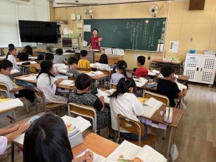 6月12日(水)2時間目、3年2組は国語で「ワニのおじいさんのたから物」を読んで、あらすじにまとめ、感想を書いていました。