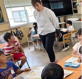 6月12日(水)5時間目、1年1組は国語で「あ○○○ あ○○○ あいうえお」の○に入る言葉をさがしていました。「あ」の次は「か」そして「さ」と進んでいきました。