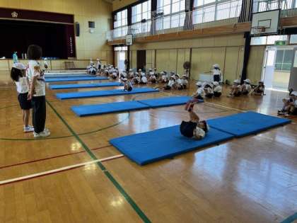 6月14日(金)2時間目、2年は体育でマット運動をしていました。