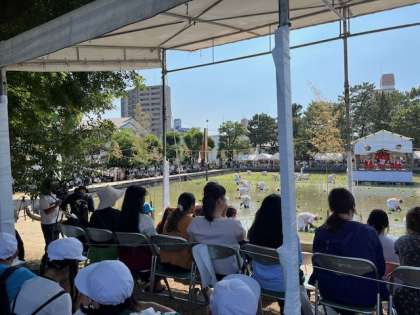 6月14日(金)5・6時間目、5年は総合で住吉大社のお田植まつりを見学に行きました。自分たちの田植えにつながればいいですし、粉浜の歴史的な背景を調べることにつながればいいなと思いました。