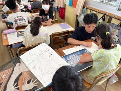 6月17日(月)1時間目、6年1組は図工で浮世絵の模写をしていました。