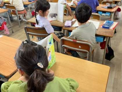 6月21日(金)1時間目、1年1組は国語で3つの動物がどのようにして自分の身を守るのかを隣の人に質問して、それに答える学習をしていました。