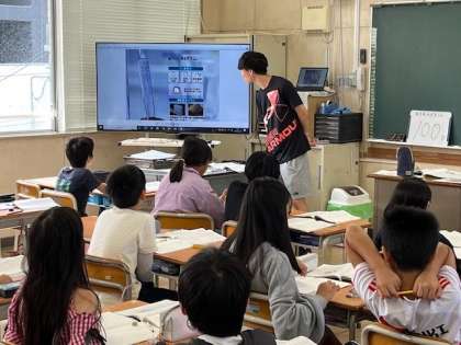 6月21日(金)1時間目、4年1組は国語で「広告を読みくらべよう」を学習していました。モニターに映された広告を見て話し合っていました。