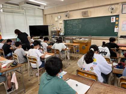 6月24日(月)2時間目、5年1組は算数で1本の対角線で合同な三角形ができる四角形を調べていました。