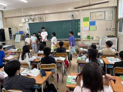 6月26日(水)1時間目、4年1組は道徳で「雨のバスていりゅう所で」を学習していました。停留所に並んで、そこへ親子がやってくる様子を劇化していました。並んでいる人の気持ちがよくわかるでしょうね。