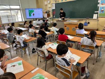 7月1日(月)1時間目、1年2組は国語で「大きな かぶ」を学習していました。