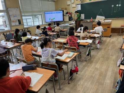 7月1日(月)1時間目、1年1組は国語で「大きな かぶ」を場面に分けていました。