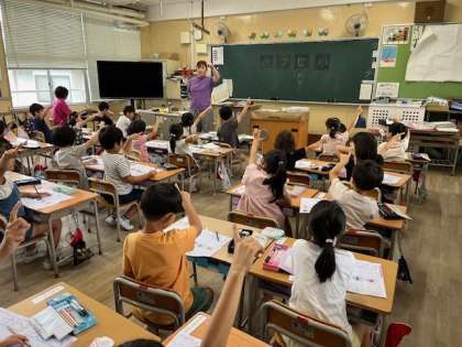 7月2日(火)1時間目、1年1組は国語でカタカナの「ハヒフヘホ」を練習していました。