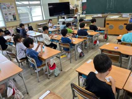 7月2日(火)2時間目、1年2組は笹飾りや願い事を取り付けていました。順番を待っている子はカードでたし算の練習をしていました。