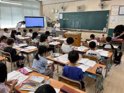 7月8日(月)1時間目、2年1組は算数でひき算の筆算のしかたを考えていました。