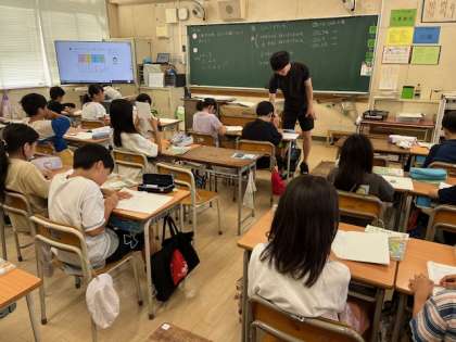 7月8日(月)1時間目、4年1組は算数で小数を10倍、10分の1倍した数について調べていました。