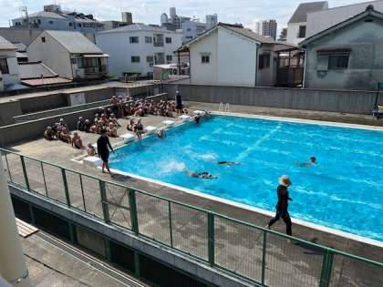 7月8日(火)1時間目、6年はプール水泳で泳力別に練習していました。