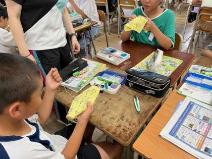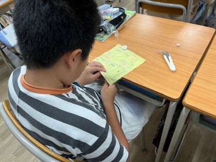 7月9日(火)1時間目、5年1組も家庭科で裁縫をしていました。集中する中に楽しそうな表情が見てとれました。