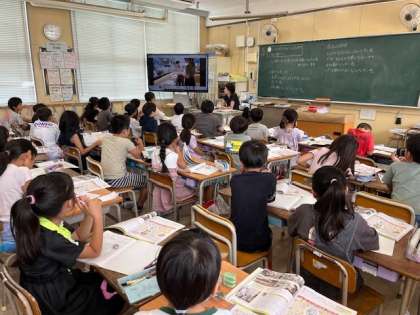 7月10日(水)1時間目、3年2組は社会科でパンは店でどのように売られているか調べていました。動画を見て気付いたことを発表していました。