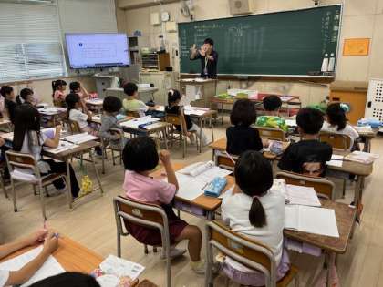 7月12日(金)1時間目、2年2組は算数で3つの数のたし算を考えていました。
