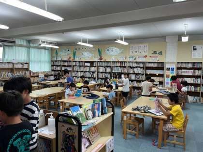 7月12日(金)1時間目、4年2組は図書で本を探したり、読んだりしていました。