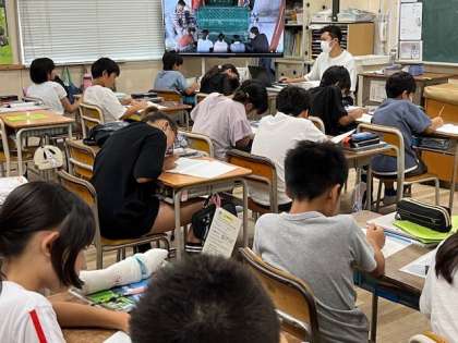 7月12日(金)1時間目、5年2組は社会科でのりの養殖について調べていました。動画を見て気付いたことをノートに書いていました。