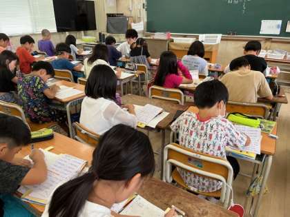 7月17日曜日(水)1時間目、4年2組は計算ドリルをしていました。