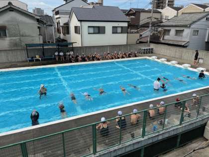 7月17日(水)1時間目、5年はプール水泳で、平泳ぎの練習をしていました。うでのかきと足のけりのバランスが難しいですね。あせらず、うでのかきから始めることが大事ですね。