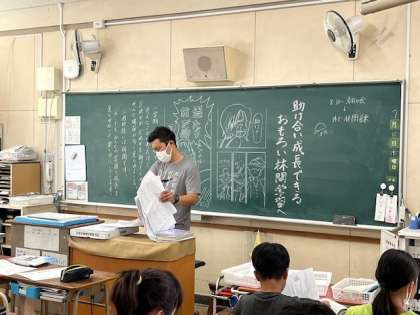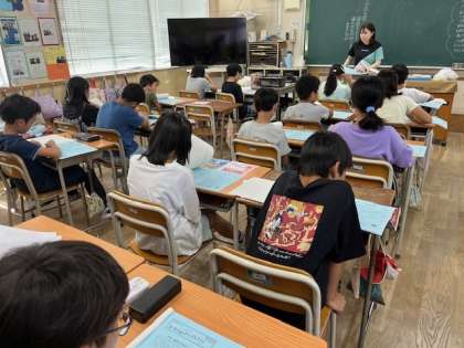 7月18日(木)1時間目、5年は運動場で林間の式の練習をしていました。その後1組も2組も「夏休みのくらし」についての話がありました。