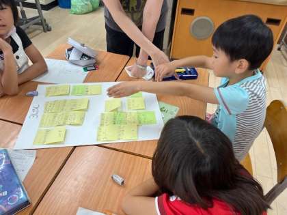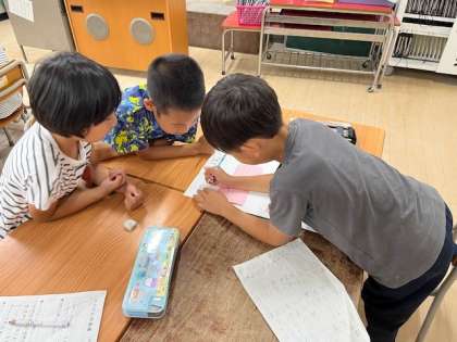 7月18日(木)1時間目、2年1組は生活科で自動車文庫の方から聞いた話を、ふせんに書き、班ごとに分類することをしていました。班の人がどんなことを聞き取ったのかが目に見えてわかりやすくなりますね。