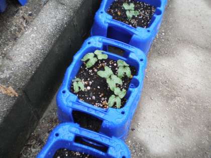 1年生は毎朝ペットボトルに水を入れて、あさがおに水やりをしています。