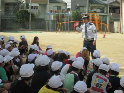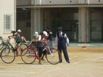 予定が少し変わってしまい、2時間目低学年(歩行)・3時間目中学年(自転車)・4時間目高学年(自転車)で実施しました。