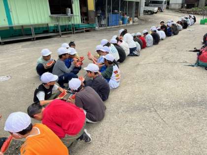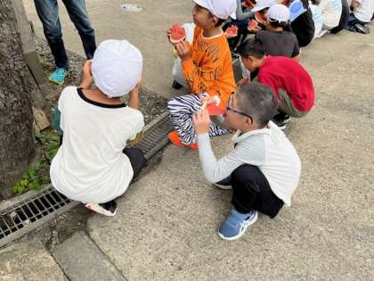 無事下山しました。おやつのスイカをかぶりつき癒されていました。山登り頑張りました。