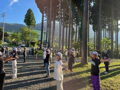 朝のつどい ラジオ体操の後、頭の体操をしました。みんな元気です。