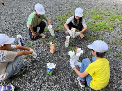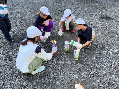 牛乳パックに火をつけて、待ちます。