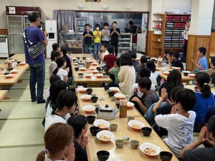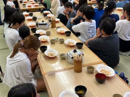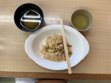 林間学習最後の食事です。炊き込みご飯をいただきました。