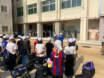 帰校式 ハチ高原と大阪の暑さの違いにおどろきました。林間で学んだことを2学期に生かし成長していってほしいです。保護者のみなさん、お迎えありがとうございました。