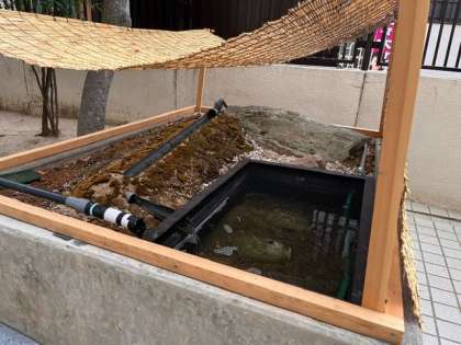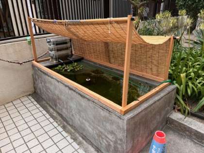 メダカの池に続き、夏休み中にザリガニの池が完成しました。