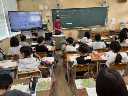 8月30日(金)3時間目、3年2組は算数で一万の位より大きい数の数え方を考えていました。