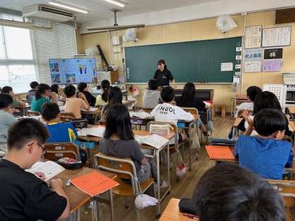 9月2日(月)1時間目、6年2組は家庭科で洗濯の仕方について学習していました。次の家庭科の時間に実際に選択の実習を行うようです。