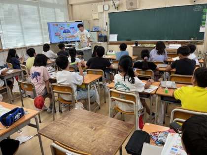 9月2日(月)1時間目、4年1組は外国語活動で「What time is it?」を学習していました。